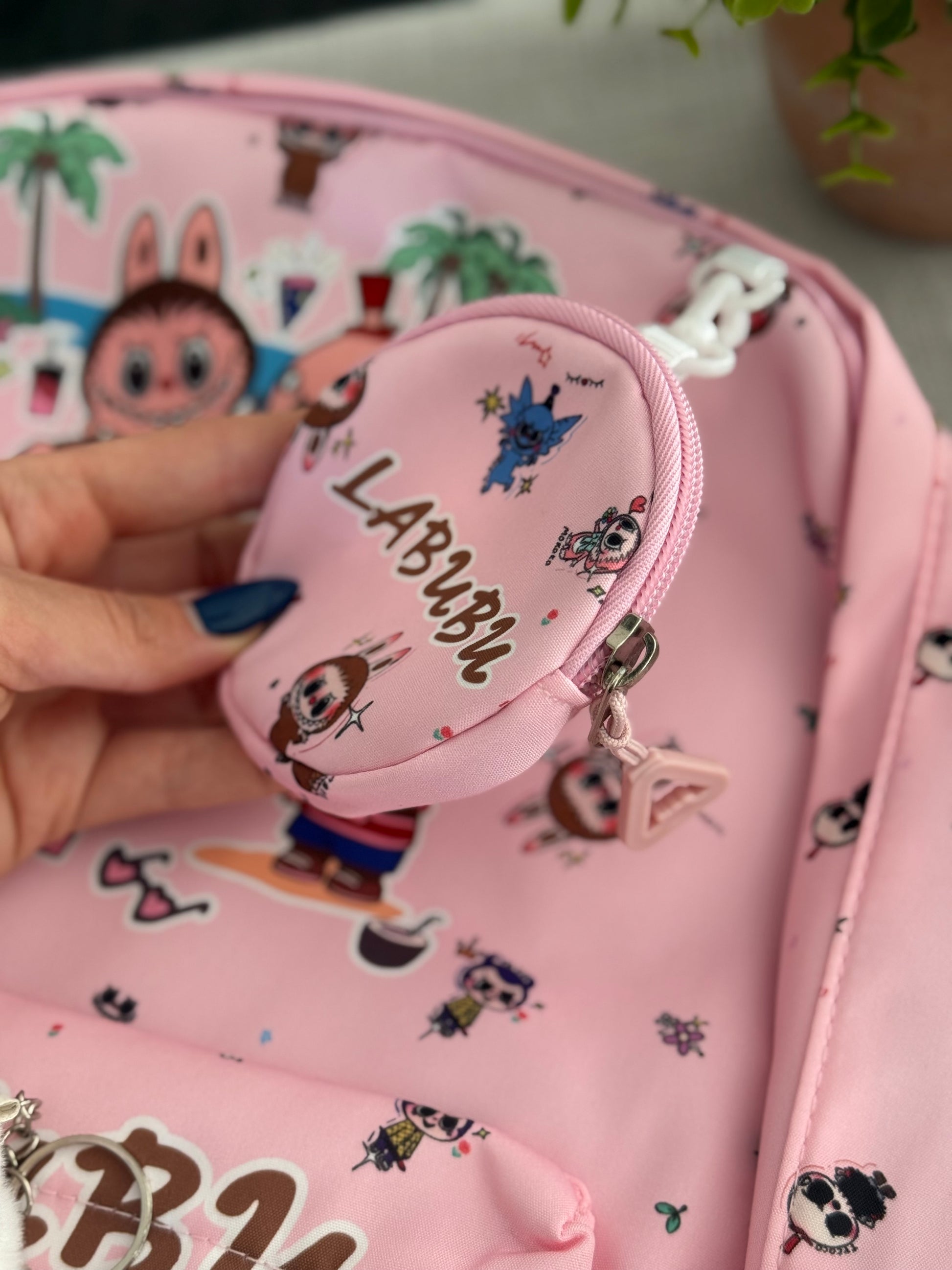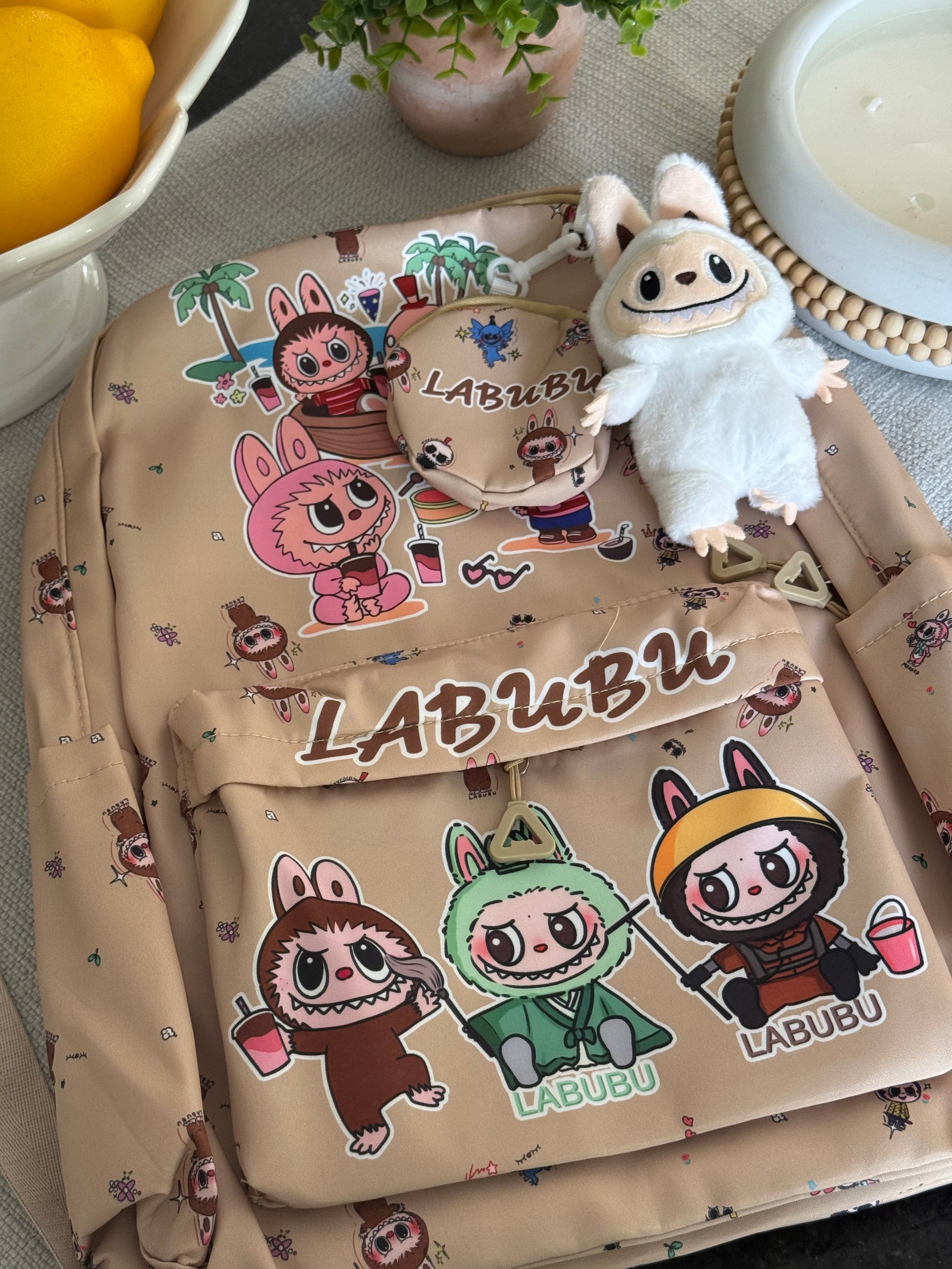 Each backpack comes with full sized Labubu stuffie keychain, coin bag! With Labubu Backpack, you can enjoy the convenience of same-day shipping. Each purchase includes a full-sized backpack that comes equipped with a Labubu stuffie keychain and a coin bag for added storage.