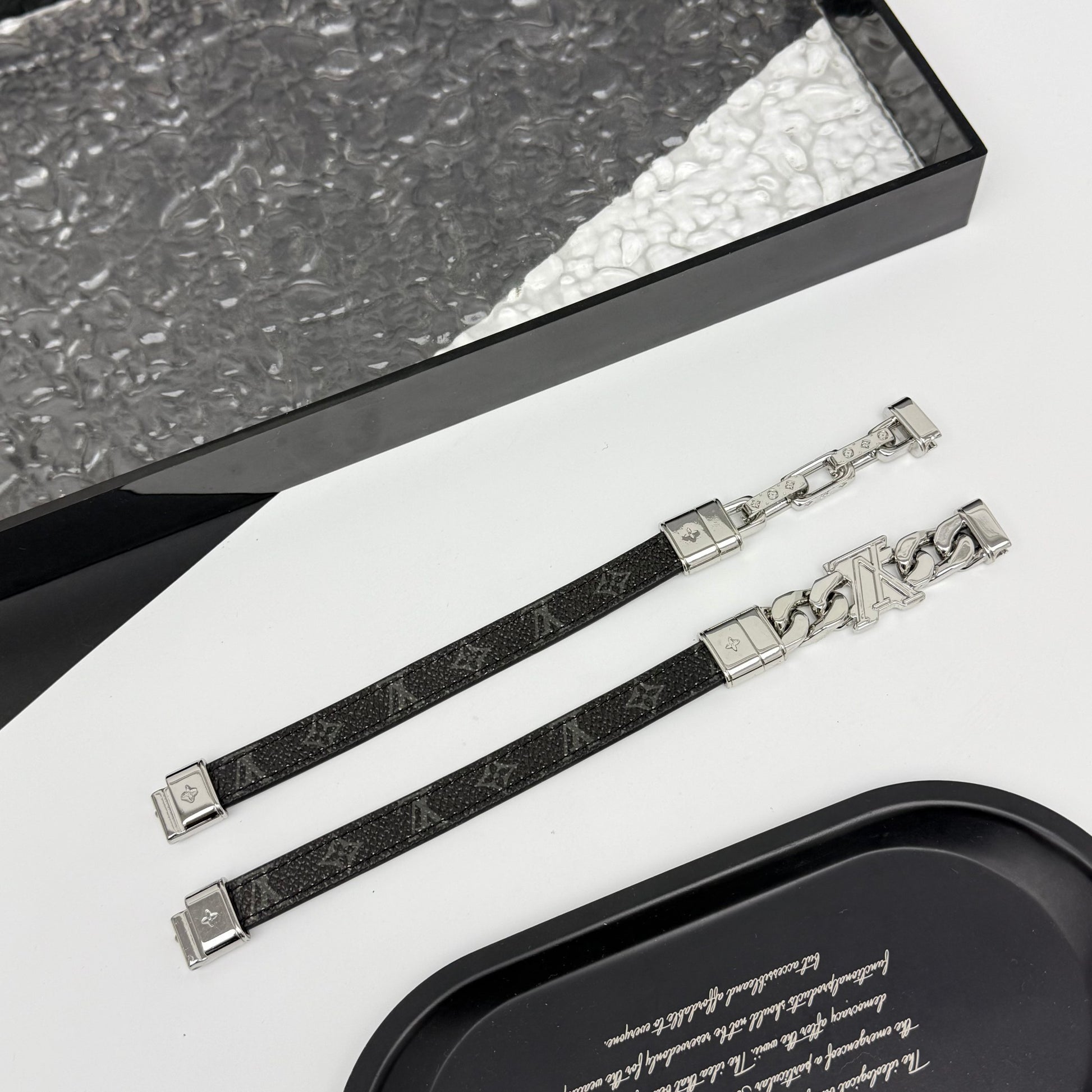 Black/Silver Leather YSL Cuff